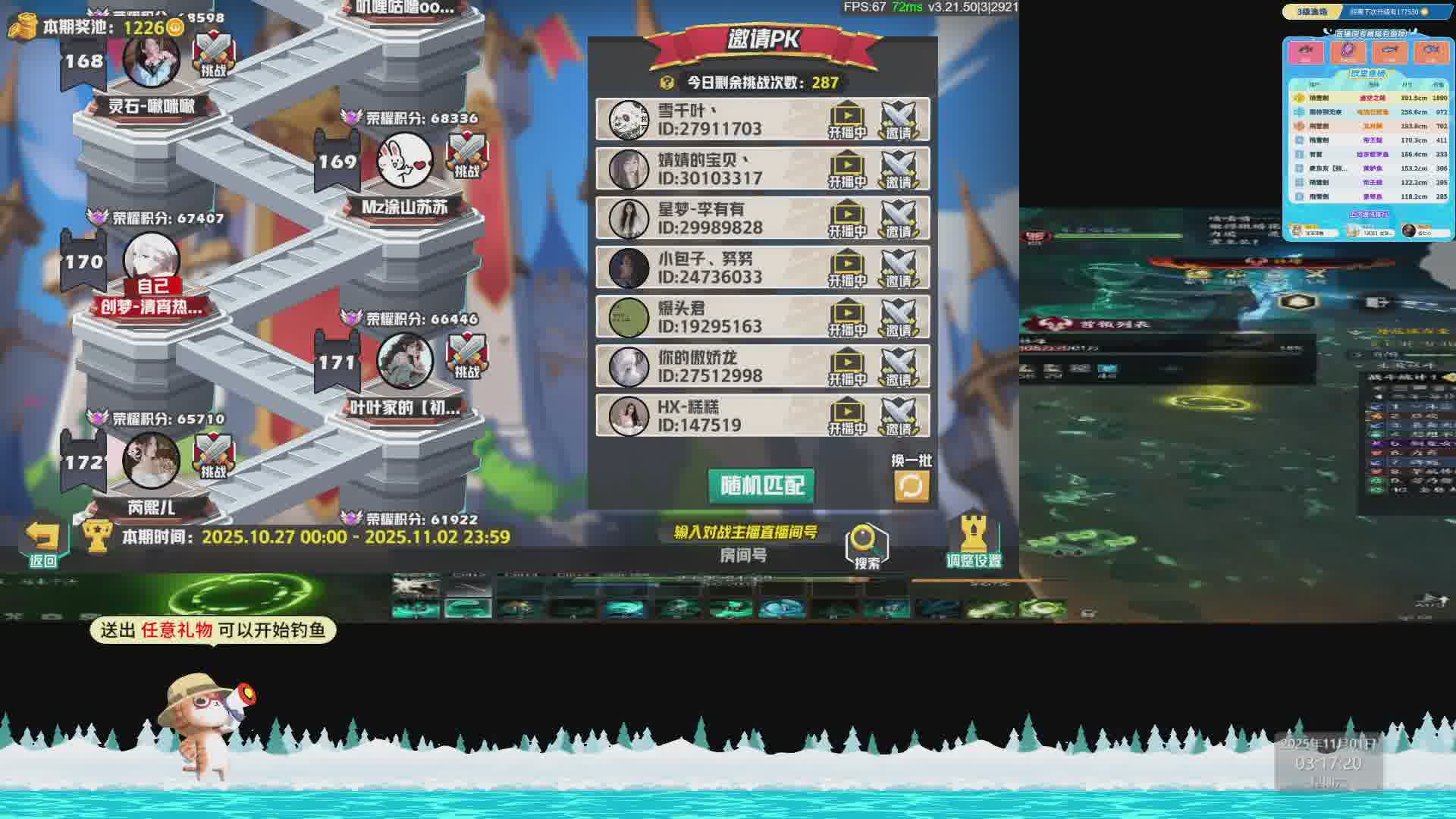 以列表的形式展示观众最近送礼的情况